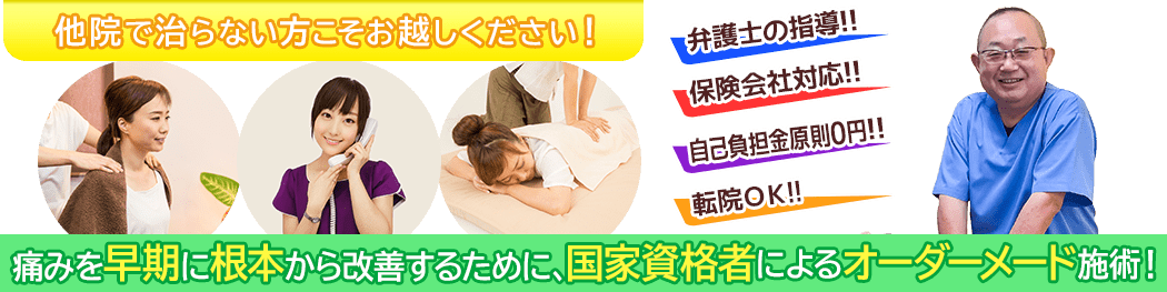 はちけん堂鍼灸接骨院は、後遺症に大変詳しい「弁護士法人心」さんの指導を受けておりますので、保険会社対応も万全です。